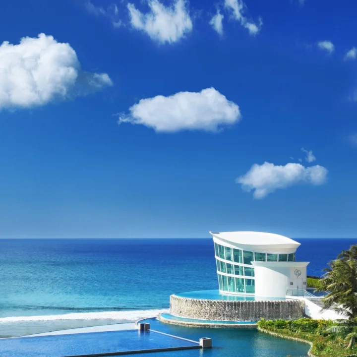 透き通る海と空が広がる白砂ビーチの目の前に佇む、全方向ガラス張りの独立型チャペル。自然光が差し込む白亜の空間は、海と一体となるような神聖な雰囲気に包まれます。喧騒から離れた静かなロケーションで、大切な誓いの瞬間からパーティ、ガーデンやビーチでの寛ぎの時間まで、贅沢なプライベートウェディングが叶います。